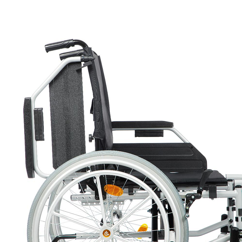 Кресло-коляска инвалидная с дополнительным механизмом управления одной рукой Ortonica Control One 300. Устройство управления можно установить под левую или правую рабочую руку. Усиленная крестовина обеспечивает прочность конструкции.