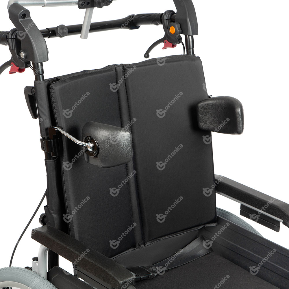Кресло-коляска для инвалидов Ortonica Delux 500 обеспечивает комфорт пользователя за счет системы регулировки угла наклона спинки. Подголовник и боковые поддержки обеспечивают правильное положение пользователя в коляске. Изделие оснащено широким диапазоном регулировок, что позволяет настроить коляску под индивидуальные потребности пользователя. Съемная распорка спинки, колесные антиопрокидыватели с упором, ручки для сопровождающего, оснащенные тормозом с возможностью фиксации положения обеспечивают комфорт для сопровождающего лица.