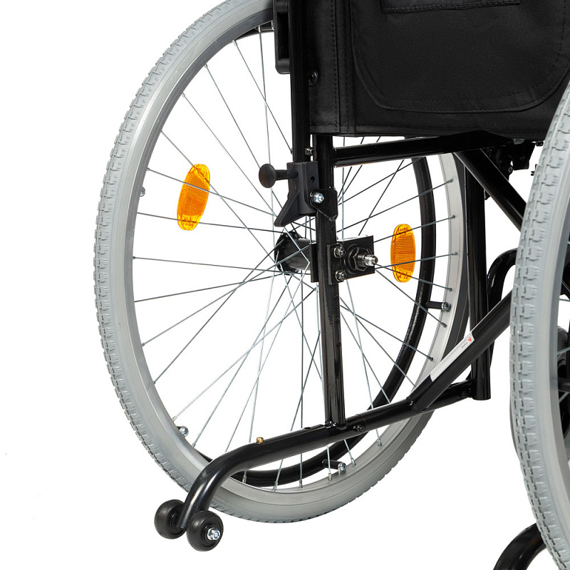 • Быстросъемные задние колеса с кнопочной фиксацией, регулируемые по горизонтали и вертикали