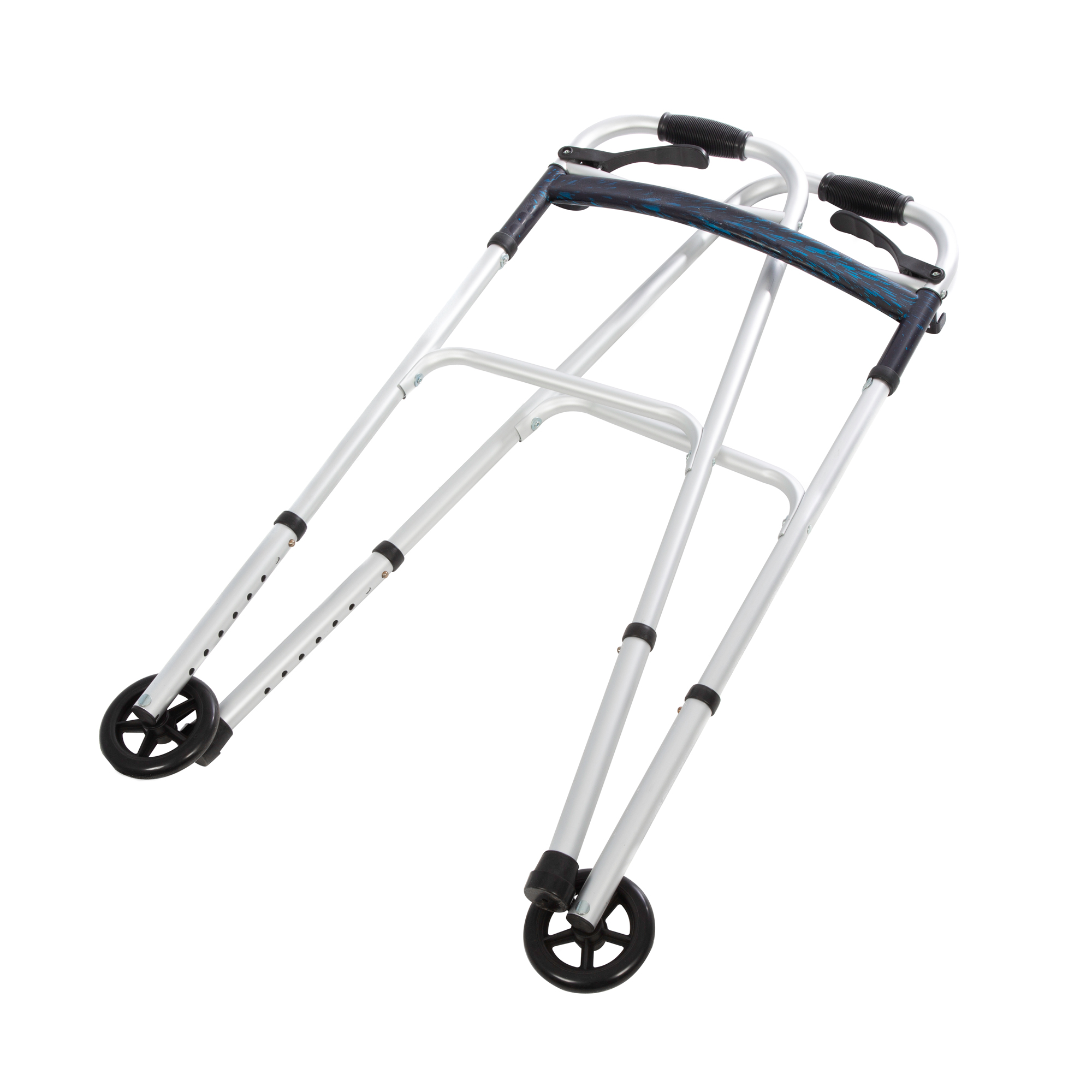 Ходунки Ortonica XR205оснащены передними цельнолитыми колесами на опорных ножках, не требующими подкачивания. Ножки, регулируемые по высоте, дают возможность настроить высоту под рост пользователя без применения инструмента, позволяя минимизировать нагрузки на позвоночник и суставы. Безопасность пользователя гарантируют противоскользящие накладки на поручнях и ножках. Складная конструкция с помощью удобных ручек на опорах и легкий, но прочный алюминиевый каркас делают изделие удобным для хранения и транспортировки.