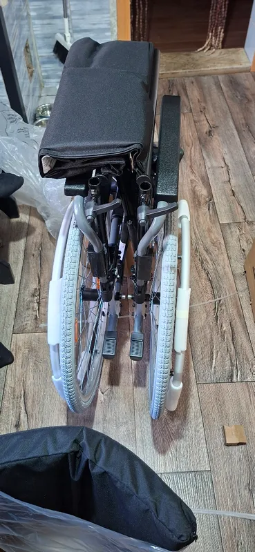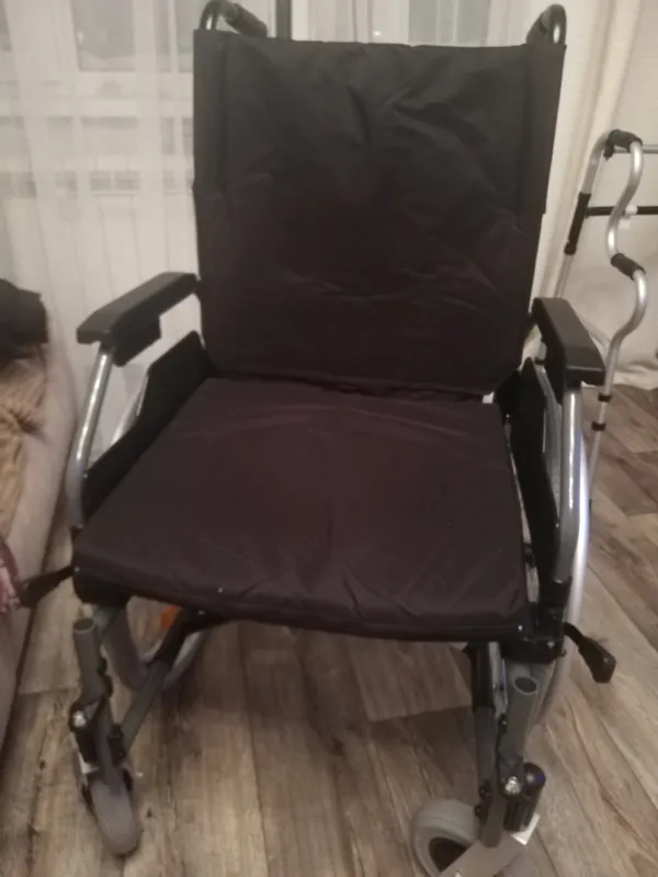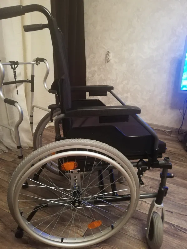 коляска качественная, легкая, простая в обращении, быстро складывается и проезжает в узкой квартире во все двери ( но только в размере сиденья 43 см) ! Учитывайте внешние габариты при выборе сиденья. Единственный существенный недостаток - плохо переезжает пороги, не может даже 1,5 см перескочить без усилий. А вот ещё не хватает стояночного тормоза, есть только ручной у сопровождающего лица. Если инвалид захочет самостоятельно пересесть из/в неё, то она может укатиться, да и так,если будет стоять под уклоном без присмотра,то может укатиться .